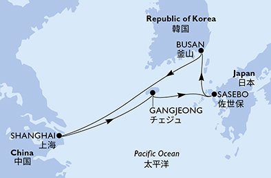 - Shanghai -> ????? -> Sasebo Japan -> Busan Korea Republic of -> tengeren -> Shanghai China